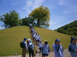 1年生の合宿最終日の今日は、山梨県立考古博物館の見学を行いました。初めに曽根丘陵公園で東日本最大級の前方後円墳(銚子塚古墳)を見学し、その後、昨年日本遺産に認定された「星降る中部高地の縄文世界」に関する展示物を中心に歴史の世界にふれました。