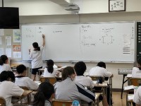 1年生数学では、『文字と式』分野において、文字を使った式の表し方やきまりを学習しています。初めは式の中に文字が入っていることに戸惑う様子も見られましたが、繰り返し練習を行うなかで自然に使うことができるようになっています。ここで文字式を自然に扱う力を養い、これからの学習につなげていきます。