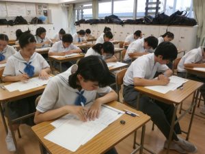本校では年に3回、準会場として英検を実施しています。本日今年度第1回目の英検が行われ、全校で102名が2~5級の受検をしました。今回は中間テストと日程が近かったため、生徒たちは前々から計画を立てて対策してきたようです。最後まで集中して力を出し切り、多くの生徒が合格することを期待しています。