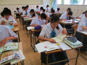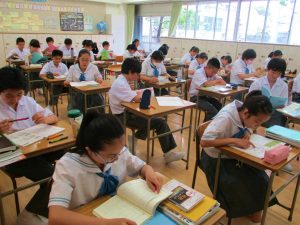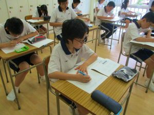昨日から1学期の中間テストの期間です。1年生にとっては初めての中学校でのテスト。清里合宿で立てたプランに沿った学習方法を確認し、また次に向かう機会でもあります。どの学年も昨日、今日ともに登校後すぐから、テストまでの時間をぎりぎりまで復習にあてている姿が印象的でした。特に3年生は、高校受験と同じ意識で臨むという姿勢が教室全体に浸透していました。