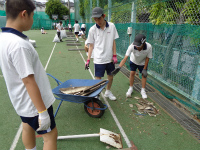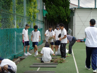 今週3日間、チロル学園でお世話になる藤田先生と2人のスタッフ(卒業生)が中学校で作業を行って下さいます。生活教養の時間を使って、スタッフの方から草取り作業の手順やアドバイスをもらいながら行いました。用具の名称や使い方、雑草を抜くときのポイントなど丁寧に教えてもらい、生徒たちも真剣に作業に取り組めたことは大きな収穫です。来週のチロル学園合宿でも自然にふれあい、農作業を通して生活力や持続力を養っていくことが目標です。