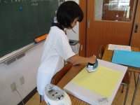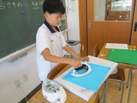 実習の時間には、調理・被服・木工・修繕・事務用品の作業など、生活に役立つことを学びます。今回は第1回目の被服でした。1年生では基礎縫いの技術を身につけていきます。初めにこれから縫う「布巾」のアイロンがけとネームシールの接着を行いました。各自が選んだ色の布なので、楽しみにしている様子です。アイロンの扱い方や安全面で気をつけることについてクラスで説明を受けた後、一人ずつ順番にアイロンを使います。布をのばす左手の動きと、アイロンを押さえる際の圧のかけかたがポイントでした。アイロンがけのあとは、裁縫道具の名称を確認し、糸通しを用いて針に糸を通す練習をしました。何度か繰り返すうちにコツをつかんだようでした。次回は、玉止め・玉結び・並み縫いに取り組みます。「手が覚える」という表現がありますが、たくさんの経験を通して裁縫技術の定着を目指します。