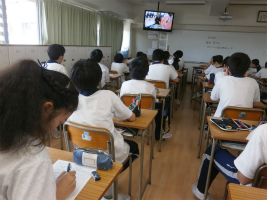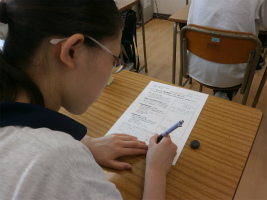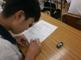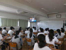 2年生1学期の生命科単元は「福祉」。今回は福祉現場の実情を、東京都福祉保健局制作のDVD視聴を通して理解を深めていきました。とかく福祉の仕事はきつく、低賃金というイメージがありますが、年収のデータや高齢者施設、保育所の職場の様子を見ることでイメージが変わった生徒が少なくありませんでした。生徒の感想から「大変そうとか、きついわりには給料が少ないとか中身を知らずに思っていました。何かで体験できる機会があれば是非やってみたいです。今、ここでイメージが変えられて良かったと思います。」