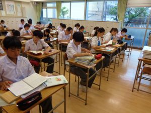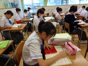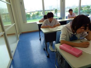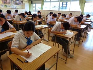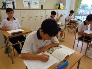 1学期の総合テストが始まりました。学期のまとめのテストに向けて、計画的な学習を進めてきたその成果を試す2日間です。登校後すぐに着席して復習を行いながらテストに備える、そんな静かな朝となりました。教科内容の定着度合いをはかり、次の学習の目標をしっかりと持つことが学期のまとめにつながるでしょう。