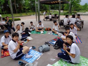 合宿最終日は、朝食後に館内清掃を行い、チロル学園を出発しました。そして、御勅使川南公園でお弁当を食べて、サントリー天然水南アルプス白州工場を見学しました。工場見学では「南アルプスの天然水」の天然水がどのように育まれ、どのような工程で製造されているのか等の説明を聞きました。また、実際に工場で①ラベルをまく→②キャップに印字する→③箱につめる工程を見ることができました。見学後は試飲も楽しみました。