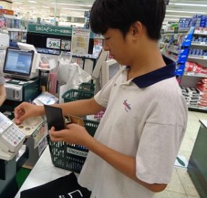 今学期2回目の体験「買い物」が行われました。本日は前回の反省点を踏まえ、スムーズにお会計することや店員さんとのコミュニケーションを図りながら買い物することを目標に据えました。「レジ袋はご利用になりますか。」と聞かれたときは、「いりません。」とはっきり答えられる生徒が増えていました。また、おつりを握ったまますぐにその場を離れることで、後ろの人を待たせない会計の方法を実践している生徒もおりました。各々の買い物の姿に確実な成長が見受けられたのが今回の大きな成果といえるでしょう。