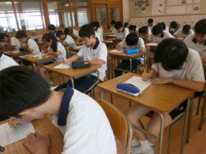 生徒の感想から…「私に足りないものは、当たり前だと思っていることに感謝することだと思う。」「今の自分にできることは、毎日に感謝して、今も学校に行けず貧しい暮らしをしている人たちがたくさんいることを忘れないで生活することだと思う。」「何か小さなことでも人にしてもらったら、必ず“ありがとう”という感謝の気持ちを忘れないようにしていきたいです。」「今自分にできること…それは自分の幸せだけでなく、自分を支えてくれている周りの人の幸せも考えることだと思います。」