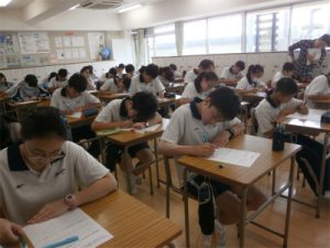 国際理解の6回目は、フィリピンの貧困に悩む状況を伝えるドキュメンタリー番組を題材にした後編。その番組に登場した14歳の少女(マニカ)はゴミ山から空き缶やビニールを拾い、換金して一家を支えていました。過酷な環境を受け止め、それでも笑顔を絶やさないマニカを支えているものは何か?マニカと自分を比べ、自分に足りないものは何か?また、自分にできることは何か?考えていきました。
