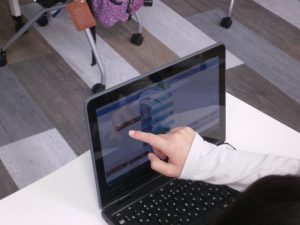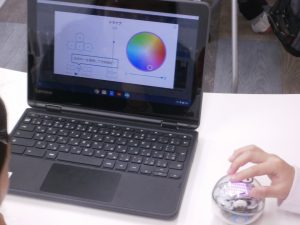 クロームブックを用いてボール型のロボットを動かすプログラミングにチャレンジ。ボールが思い通りに動き、また音声を出す様子に大喜びの講座となりました。