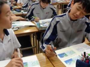 武蔵野東中学校では、教科の枠にとらわれない教科横断型の授業を「コラボ」と称してカリキュラムに組み込んでいます。2学年社会科では理科とコラボし、「中部地方の気候と季節風」について学びました。