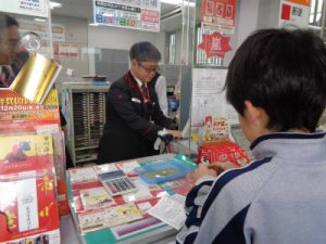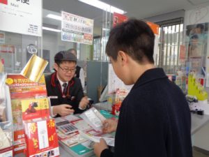 体験の授業で郵便局へ行きました。「買い物」に関しては、スーパー、コンビニ、パン屋などお店によって気を付けることが異なります。郵便局は、窓口での対面販売というところがポイントです。事前に教室でリストを見ながら注文する練習をしてから臨みました。本番では、注文は伝えられているものの、お金の出し方、お店の人とのやりとり、商品とお釣りを受け取った後の窓口からの移動等にはもう少し習熟が必要なようでした。今回の体験を通して見えてきた課題は、今後復習をしていきます。