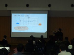 第2部の「学校説明会」では、教育内容の説明、特色、入試に関する説明のあと、「在校生による学校紹介」と本校独自の教科である「探究科」のプレゼン発表を行いました。