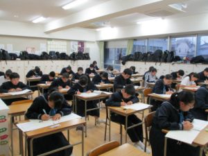 今年度第3回目の漢検が行われ、計122名が受検をしました。冬休み中も対策を進めるなど、生徒たちは長期の計画を立て、学習に取り組んできました。実力が発揮され、大勢の生徒が合格することを期待しています。