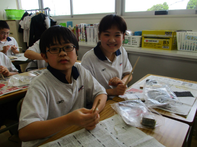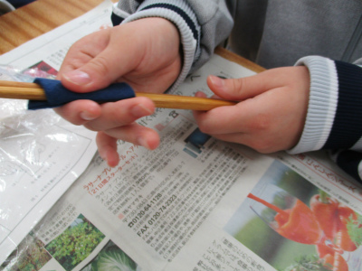 実習の時間には、調理・被服・木工に取り組んでいます。1年生の木工では箸づくりを行いました。木材に粗いやすりをかけて形を整え、徐々に目の細かなやすりに変えて磨いていきます。集中力と根気、丁寧さが必要とされる作業ですが、出来上がりをイメージしながら進めることができました。最後にオイル塗装をして布でなじませ、しばらくの間乾燥させて完成です。来週の給食の時間に実際に使ってみる予定です。