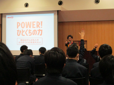 CDE組では、各学期に1度外部講師の方による講座を開いています。3学期は「考えよう!明日の体づくり」ということで、株式会社 明治より講師をお招きし、“食育”をテーマに様々な知識を身に付けました。