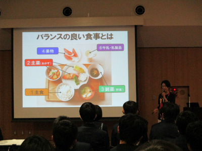 体の成長のしくみについて知り、成長期の中学生にとって「睡眠・運動・食事」が体に与える仕組みやバランスの良い食事の大切さを改めて感じることができ、各自が生活習慣を見直す良い機会となりました。栄養素の中でも、特にカルシウムに注目し、カルシウムの重要性、どのような食品にカルシウムが含まれているのか、骨代謝の流れ等、分かりやすく詳しく学ぶことができました。