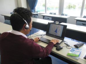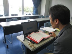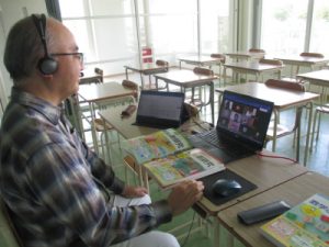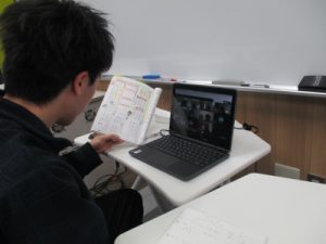 中3の進学プログラム『特別進学学習』(通称“特進”)は、放課後に約10名の小グループで行う開校以来の進学指導の柱です。今般の状況下、Meetというアプリを使って、家庭にいる生徒たちと担当の先生が双方向同時通信で学習を進めています。今回はどのグループも本格内容に入り、前回の課題解説や小テストなどを順調にこなしていました。あるグループでは、教材がよく見えないという生徒に対し、別の生徒がその場で解決方法を教えて瞬時にトラブルを乗り切るという連携もありました。いつもとは異なる環境ながら、逆にそれを力にするくらいの勢いがあります。