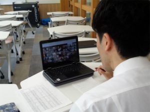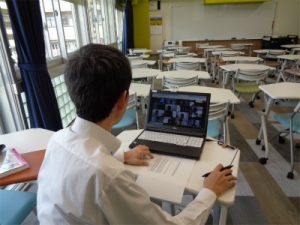 今週からABクラスは、朝のHRをMeetで行った後、5科の授業をMeetで行っています。3年生の国語では、動画やClassroomで配信した課題について、生徒の顔を見ながら説明をしました。また2年生の英語は、習熟度グループごとに授業で確認したいポイントについて先生の発問に答えたり、一緒に発音したりすることができました。もちろん生徒からの質問なども受けることもでき、授業動画配信、Classroomによる課題の出題と提出、そしてMeetによる顔を合わせての授業やHR等、いろいろなやり方が確立してきました。