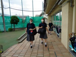 夏の通学用ポロシャツでの登下校が始まりました。制服は男子は白開襟シャツ、女子は白セーラー服ですが、洗い替えとして、紺ポロシャツを導入し、登下校時に着用できるようにしました。通気性が良いので、生徒たちにも好評ですが、速乾性なので洗濯の強い味方になりそうです。