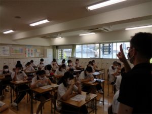 2年生の生命科では「福祉」をテーマに学習しています。今回は聴覚障害の理解を深めています。先週、耳の不自由な方へのコミュニケーションのとり方や助けを必要とする場面をプリントや動画を使って学習しました。今週は手話ソングにチャレンジし、CDにあわせて歌詞を手話で表現してみました。楽しみながら手話に触れ、身近に感じることができたようです。
