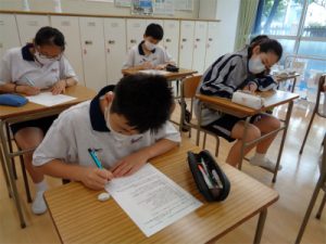友愛の5回目は、「自分の考え方・人の考え方」をテーマにしていきました。学校生活編、公共の場所編、SNS編に分けて20の場面を設定。「あいさつ代わりにいつも叩いてくるけど、軽くでも叩くのはやめてほしい」「授業中におしゃべりする人。はっきり言って、うるさくて迷惑」「電車から降りようとしたら、人が先に乗ってきた。出る人が先って常識だと思う」…自分がもしその立場だったらどう思うか?チェックしながら自分の感覚・価値観を考えました。「自分の普段の行いを見直し、改めていきたいと思う」「自分中心ではなく、相手のことも尊重していじめやけんかに発展しないよう、言葉遣いや態度も意識して日々心掛けていくと友達関係が安定していくと思う」などの意見があり、理解が深まった様子でした。