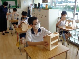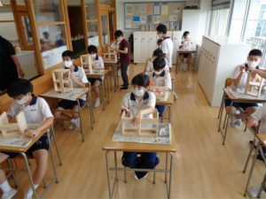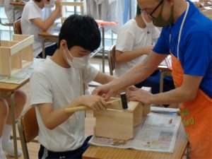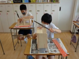 昨年、箸づくりで練習した紙やすりのスキルを活かし、根気強く磨いたり、棒やすりで角に丸みをつけて皆もくもくと作業に取り組めていたことは大きな成長です。組み立てを終え、あとは最終仕上げを9月に行う予定です。