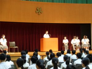 2学期は、発足会で発表した事案について、各委員会が一致団結し、その実現に努めてほしいと思います。