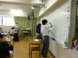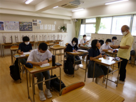 7月27日から始まっている夏期講習も、今日で7日目となりました。1日の前半は3グループに分かれて5教科の授業、後半は10人程の少人数で構成された6グループに分かれての学習となります。すっかり受験生の顔つきになっている生徒たちですが、休憩や登下校ではいつもの友達がいてリラックスした表情も見られ、メリハリのある日常が送れています。各県の入試問題や集団討論に取り組むグループもあり、ここからさらに実力を高めていく夏となります。