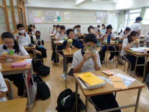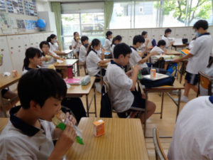 生徒たちの楽しみの一つであり、部活動前のエネルギー補給でもある本校名物の「おやつ」。1学期は今般の事情によりジュースだけを出していましたが、パンも再開しました。1年生は初めてのパンを「おいしです!」とほおばっていましたし、2年生も久しぶりでしたが、ホッとするひと時を楽しんでいました。