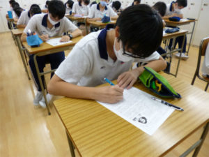 3学年の生命科では、1学期に引き続き「平和」をテーマに学習を進めています。本日は、第二次世界大戦当時のドイツの時勢やアンネフランクの生涯、アウシュヴィッツから生き延びた方々の思いなどを、映像を通して学習しました。生徒達からは、「当時の人々の、あまりにも異常な差別・偏見にただただ恐怖を感じた。」「洗脳され、ユダヤ人に対し幾らでも残酷になった人間は、とても弱くておろかな存在に思えた。」「アンネは日記を通して、私たちに事実を教えてくれた。私たちにはこのような歴史を知る義務があるのだと思う。」といった感想が挙がりました。
