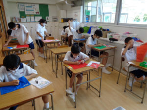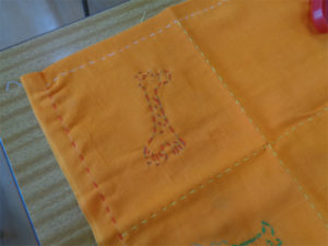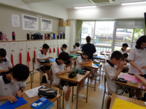 実習は2時間続きの授業で、社会自立を視野に入れ、実生活に必要な内容を学年ごとに行います。今回は1学期から制作している布巾づくりの続きを行いました。夏休みに雑巾縫いや刺繍などを頑張っていた生徒も多く、確実に1学期よりも技術が向上しています。また技術向上にとどまらず、1学期よりも作業の持続力や終わったあとの片付けなど、作業を行う上で大切なスキルも少しずつ身についてきているように感じます。