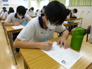 3学年の生命科では「平和」をテーマに学習を進めています。前回はアンネ・フランクとナチスドイツについて学びましたが、関連して今回はナチスドイツのユダヤ人虐殺計画の主導者だったアドルフ・アイヒマンについての映像を視聴しました。ユダヤ人への迫害や残虐な行為の恐ろしさを知るだけでなく、ごく普通だった人間がナチスの歯車の一つとして権威に屈し、自分の意思とは反する命令に従い続け自分を失っていく姿に、また違う視点で平和の尊さや人間の脆さを学ぶ機会となりました。