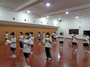 今学期から音楽の授業では、歌唱・リコーダーの活動の際にアミティエホールを使用して、合唱・合奏を行っています。今日、1年生は「浜辺の歌」を皆で強弱記号に気をつけながら歌いました。1学期は個人指導のみで、全員で歌う機会がなかったため、授業内で毎回行う振り返りシートには「久しぶりに皆で歌えて楽しい!」というコメントが寄せられています。今後も距離を十分にとりながら、演奏を充実させていきます。