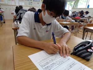 1学年の生命科では引き続き「友愛」をテーマに、相手のことを考えた行動・心がけについて考えています。今回よりインターネット上の物事に目を向け、その問題や気をつけなくてはならないことについて理解を深めていきます。本日は法務省作成の動画「インターネットの向こう側」を視聴し、個人情報を安易に掲載することによって起きるなりすまし、掲示板への悪口の書き込み等のトラブルにふれ、被害者・加害者にならないための対策等について学びました。最後には「自分はどのように気をつけていくか」について考え、「インターネットのルールやマナーを改めて確認して、しっかり守っていく」「自分や相手の個人情報は絶対に人に教えない」「ネットもネット以外でも人が嫌だと思うことは言わない」「メール等は言葉や思っていることが伝わりにくいから、送信する前に、相手を傷つけないか確認する」等の意見が挙がりました。情報化社会の中を生きる生徒達には、正しい知識をもち、問題が起きた時の怖さを知った上で向き合っていってほしいと願っています。