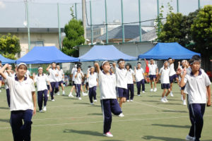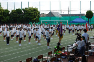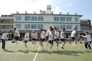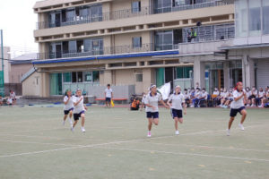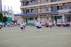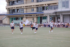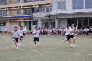 秋空の下、スポーツ大会が開催されました。新型コロナウィルスの感染拡大により1学期の球技大会や合唱コンクールが中止となった後の初めての全校行事です。スポーツ推進委員会の生徒が企画・準備から当日の運営までやり切ったこと、3つの学年縦割りチームがそれぞれチームリーダーを中心に本当によくまとまったこと、何より全力を尽くした後の生徒たちが満面の笑みを見せていたことがこの行事の充実感・達成感を表していました。スポーツ大会推進委員長が最後に話した「来年は今の2年生がさらにこれを発展させてほしい」という言葉を受けて、また新しい伝統が生まれました。