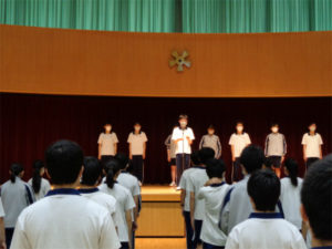 世界の動きを視野に入れた活動をしたいという目的で友愛会発足したSDGsプロジェクト。30人ほどの有志メンバー集まり、早速活発な意見交換が行われていて、学園祭実行委員会との連携やESS同好会との連携による活動案が進行中とのこと。全校朝礼にて校長先生から今年のノーベル平和賞に決まった「WFP(世界食糧計画)」の話題があり、目を向けるべき問題への示唆があったあとで、プロジェクトリーダーから活動についての報告がありました。今後に期待大です。