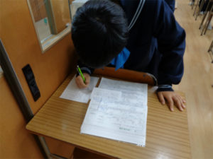 今回のプランノート研修会では1年生はクラスの友達のノートから、2年生は3年生のノートから活用の仕方を学び、3年生は2年生のノートの使い方を見てアドバイスをしました。この研修会を通して気づいたことを活かし、自身の計画をより充実したものにしていきます。