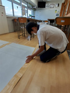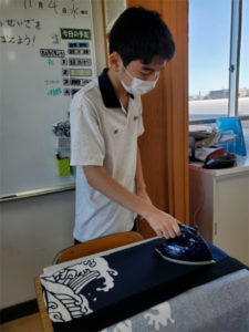 CDEクラスは学年ごとに劇発表を行う予定ですが、舞台背景や小道具の製作、衣装の手入れなど、自分たちでできることは自分たちで行うのが中学生ならではです。学年が上がるにつれてできることも増えてきます。今日は衣装のアイロンがけを行いました。温度設定、皺の伸ばし方、保管の仕方など、日頃の経験を活かして丁寧に取り組めていました。自分たちで作ったり、手入れをしたりすることで、より思い入れをもって劇に臨むことができます。