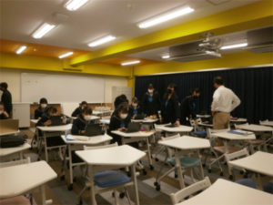 CDE組は劇練習、1年AB組は『探究科』ゼミ発表、2年AB組は『探究科』個人探究のプレゼンにむけてスライド完成の作業を進めます。3年AB組は前半の授業の後、後半は運営や装飾に関する活動 を行いました。学園祭実行委員会では59人のメンバーの当日のシフトを決めるなど、直前の仕事にとりかかっています。 ※今年度は一般の方への公開は控えておりますので、学園祭実行委員会による「web学園祭」をご覧ください。(13日より順次公開)