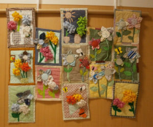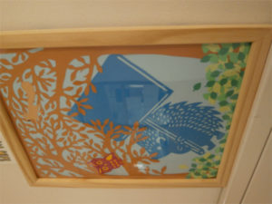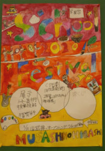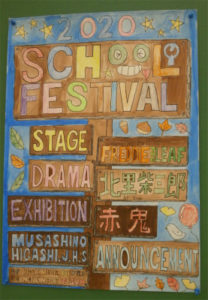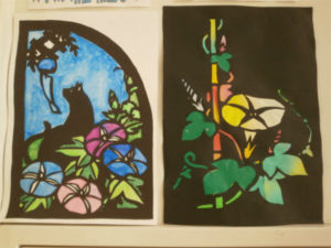 日常の校内展示を、再び紹介します。CDE組の「技能」の授業で制作した切り絵の作品、手芸の作品も展示。来週からは校内は学園祭の展示に切り替わり、すでに掲示板には「技能」(絵画)で制作した学園祭のポスターも貼られています。