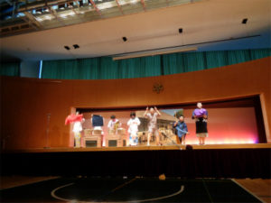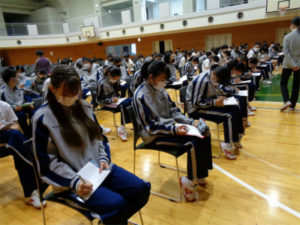 CDE組の劇は、学園祭の学習発表のひとつです。直前のリハーサルは、AB組の生徒の前で演じました。緊張しながらも、今までの練習の成果を見事に発揮した熱演ぶりに、見ている生徒たちから「すごい」「うまい」「感動した」など絶賛の声が上がっていました。終了後、観覧した生徒たちは、感想を書きます。CDE組の生徒たちはこれを励みにさらに演技の完成度をあげていきます。