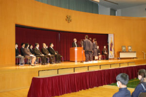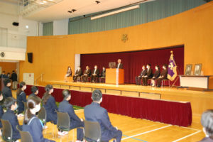 学園創立56周年記念式典が挙行されました。生徒代表の3年生がお祝いの言葉を述べ、それに応える形で理事長からの式辞がありました。また勤続職員の表彰では、30年勤続・10年勤続の先生たちに大きな拍手がわき、厳かながら、明るい雰囲気の式典となりました。