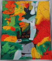 ※「特選」の作品は15号のキャンバスにアクリル絵の具で“紅葉の中にある滝”を描いたものです。