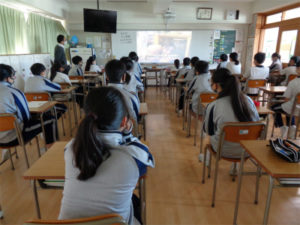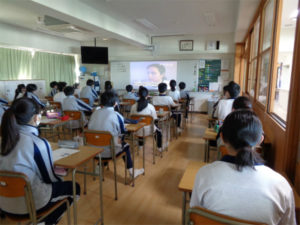 2年生の生命科では命の尊厳について扱っています。前回から2週にわたり、通常の8~10倍の速度で老化する難病・プロジェリアに冒されたアシュリー・ヘギさんの映像を視聴しました。短い命を刻みながらその運命と向き合うアシュリーさんとその家族・友人との関わりを通して、生きる意味、彼女の残された命の中で見つけた使命についても考えました。同じ年頃のアシュリーさんの言葉は現在中2である生徒たちの心に響いたようです。