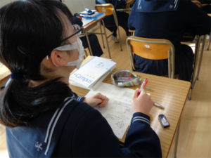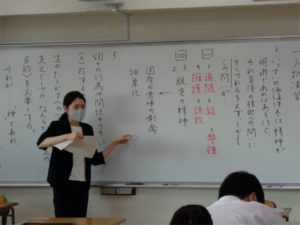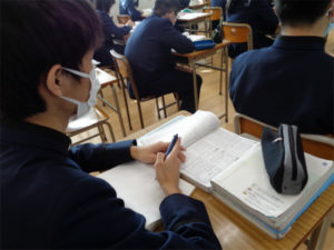 3年生は、五教科の3年分のカリキュラムをすでに終えており、現在は過去に出題された高校の入試問題を使った演習で応用力を伸ばしています。あるグループは、数学の二次関数の難問に取り組んでいましたし、あるクループは国語の長文問題を解いて、その解説を受けていました。単に自分の解答が正解だった、不正解だったということにとどまらず、要点を分析し、次に活かすことを目的にしています。