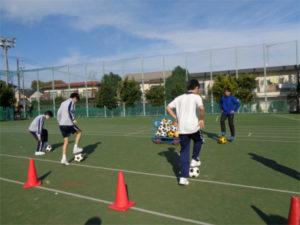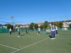 中学校の体育では、3年間で様々なスポーツに取り組みます。陸上、ポートボール、テニス、卓球、スキーetc.。3年生の秋から冬にかけてはサッカーを行いました。パス、ドリブル、シュートなどの要素に分けた動きの練習を経て、2チームに分かれてミニゲームもしています。パスがつながる楽しさ、みんなで協力してシュートが決まった時の喜びなどを、上達するにつれて感じるようになっていったようです。HRの時間を使ってクラス対抗でゲームをすることもありました。寒い季節ではありますが、活発に体を動かしています。