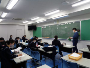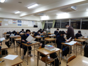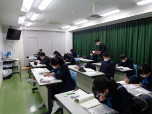 3年生の放課後の特別進学学習=通称「特進」が佳境を迎えています。三者面談を通して志望校も固まり、どの特進グループもいろいろなタイプの入試問題に取り組んでいます。生徒たちの眼差しも真剣。楽し気な雰囲気の中にも、難問に食い下がろうという気迫が伝わってきます。体調に最大限の配慮をしつつ、ペースは上がっています。