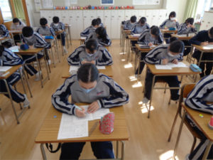 2学期最終盤の3日間、3AB組は受験形態別に特別時間割を組み、2時間をセットとして過去問の演習と解説を繰り返しました。特に社会科と理科は全てのカリキュラムが終了後、初めての演習になります。生徒からは「また同じような問題だ。」「問題の読み落としをした。」などの感想が多く、過去問演習の意味理解や、答案作成力の向上が伺えました。休み中の練習を経て、3学期もさらにアウトプット=答案作成力向上に突き進みます。
