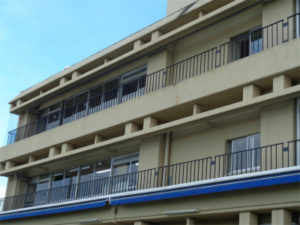 運動場に面した校舎北側のベランダ(2階と3階)に、安全対策としての空間をふさぐ網を設置しました。