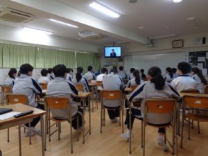毎年12月にスピーチコンテストを行っています。自分が最も伝えたいことを端的にまとめ、論理的に説得力をもって伝える力を伸ばすことが目標です。今年度も、各クラス予選を経て選出された15名の代表生徒によるスピーチが行われました。今年度は密を避けるため、放送室からのライブ映像を各教室に配信する形となりました。例年とは違った緊張感がありつつも、どの発表者もカメラに向かって堂々と表現する姿が印象的でした。テーマは、自身の成長や学び、社会問題への警鐘、物事の見方や考え方など様々でしたが、それぞれに発表者独自の視点が盛り込まれており、聞き応えのあるものばかりでした。表彰は終業式に行われる予定です。